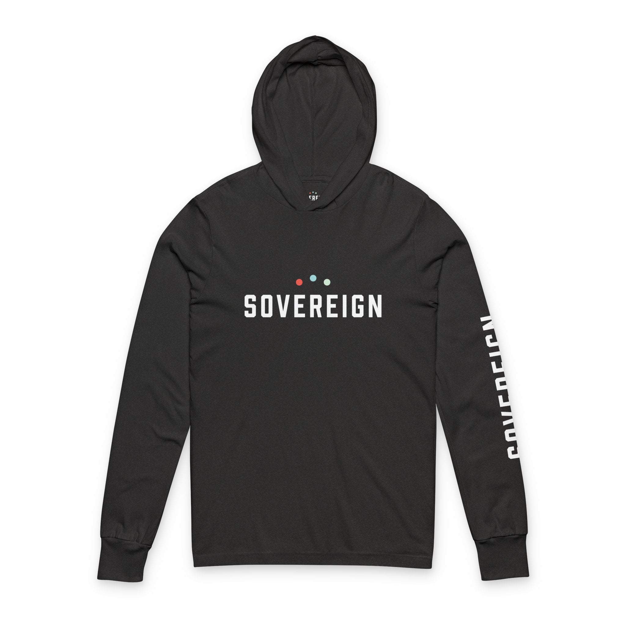 Running down the left arm, the SOVEREIGN logotype carries forward in motion. Not a slogan. Not a demand. A quiet reminder of disciplined self-governance practiced daily.